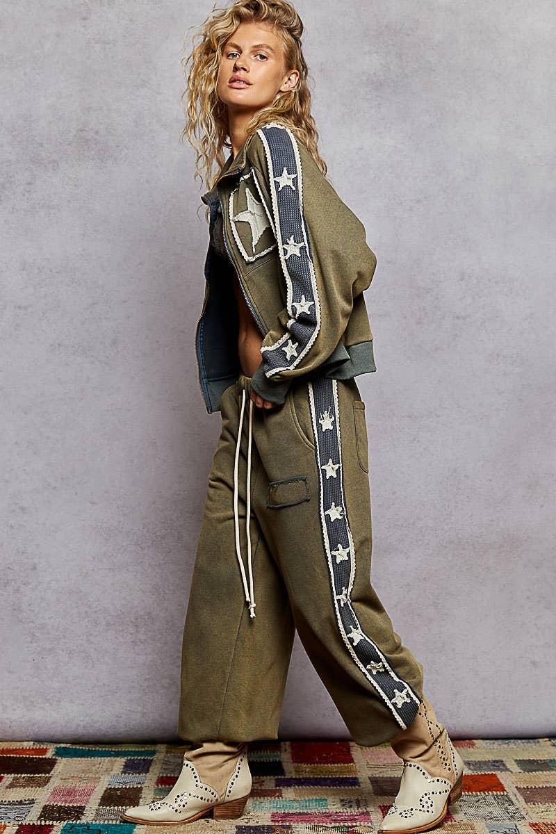 Effortlessly cool with a touch of edge, this Vintage Moss Stars and Stipes Jacket features a roomy fit and a bold star patch for standout style. Designed for layering, it's the perfect throw-on piece for casual days or nights out. Pair it with cargos, leggings, or a fitted dress for that laid-back, off-duty vibe.