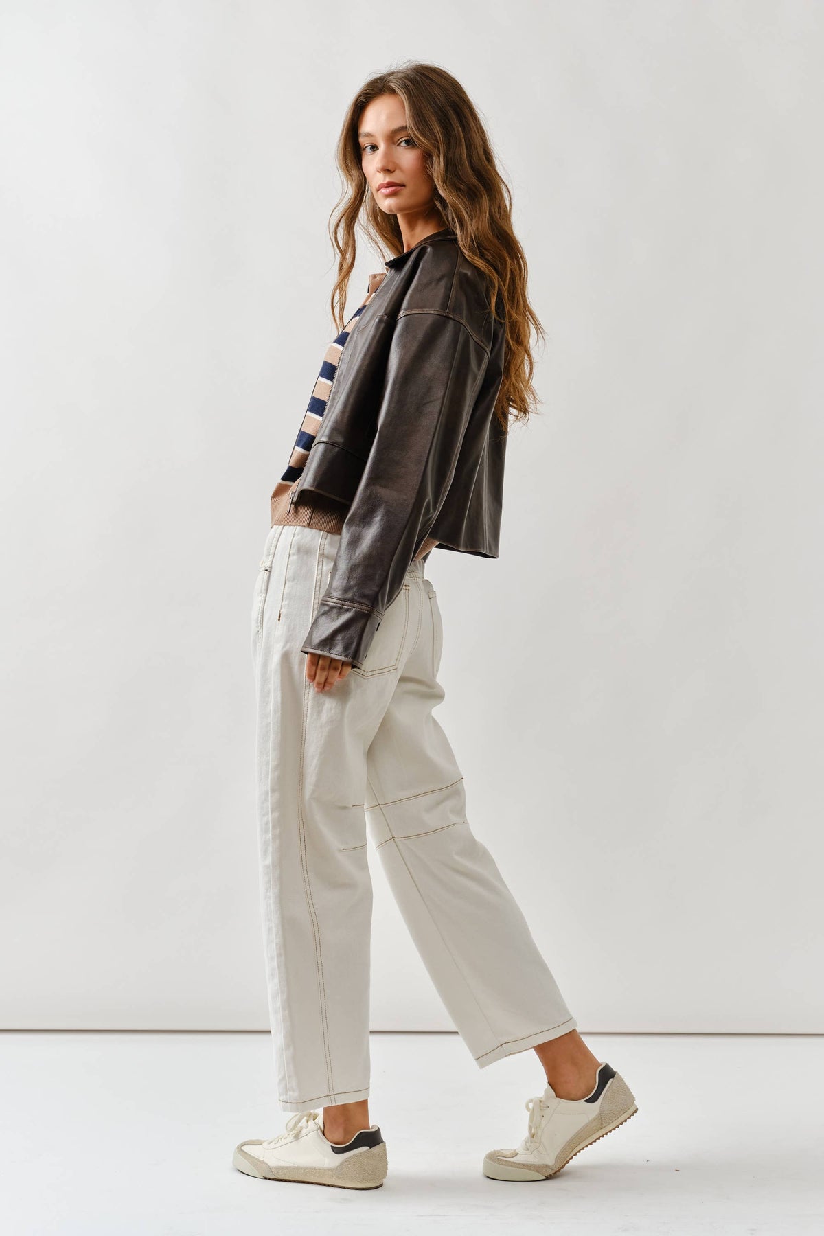 Crafted from faux leather with a vintage-washed finish, this timeless jacket brings a rugged yet refined edge to your collection. Designed with a relaxed silhouette, it features practical side pockets, a zip-front closure, and subtle distressing for that perfectly worn-in look. Effortlessly cool -Vintage washed leather